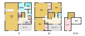 - システムキッチン、カウンターキッチン、シャンプードレッサー、洗浄便座、浴室乾燥機、追い焚き、複層ガラス、ルーフバルコニー、ロフト、グルニエ(屋根裏部屋)、モニタ付インターホン、駐車場2台分、床下収納、トイレ2箇所