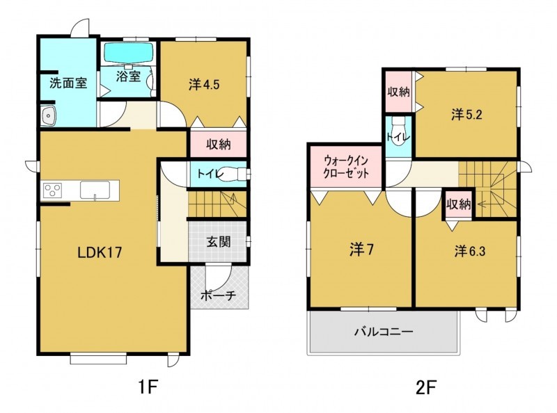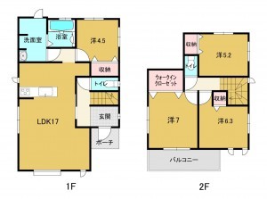 - システムキッチン、浴室乾燥機、複層ガラス、ウォークインクローゼット、モニタ付インターホン、駐車場2台分、駐車場3台分、床下収納、トイレ2箇所